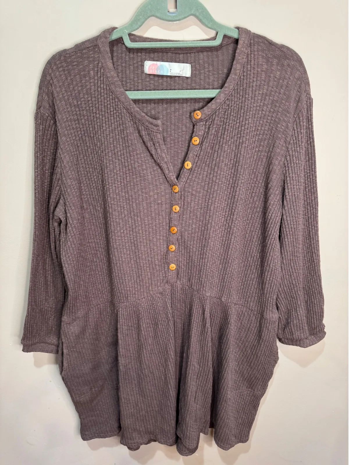Free People Beach Blossom Button-Up Flowy Slouchy Henley Dress Sz M Brown‎ Brown Size M - $30 - From Crystal