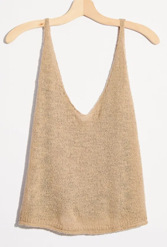Effortlessly cool and beachy-soft, this Free People Beach knit tank is your go-to for layering or lounging. With a deep V-neckline, relaxed fit, and textured knit, it’s perfect for pairing with denim, linen trousers, or flowy skirts. The neutral beige tone makes it endlessly versatile, while the natural fiber feel adds laid-back charm. Details: Brand: Free People Beach Size: Medium (M) Color: Beige Style: Sleeveless knit tank with deep V-neck Material: Soft cotton/poly blend Condition: Excellent preloved condition — no flaws noted Styling tip: Tuck into high-rise jeans for a casual look, or layer over a bralette with wide-leg pants for a coastal vibe.