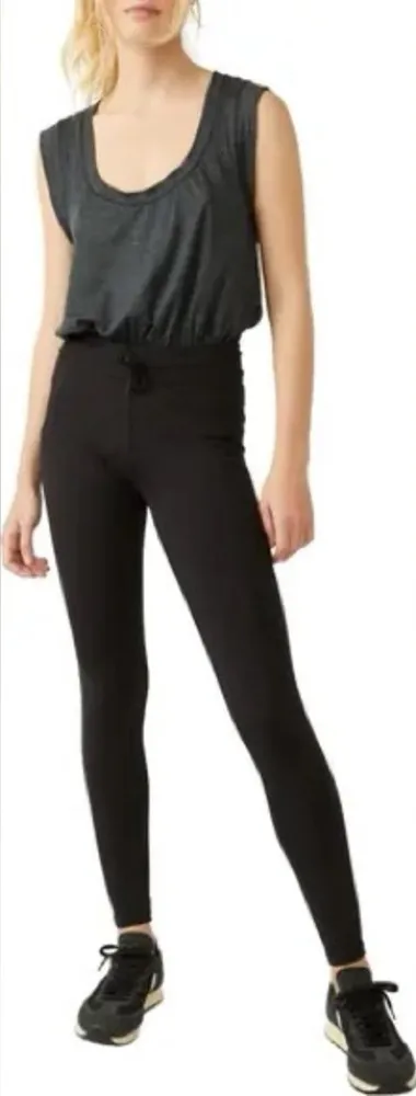 Pit to pit ~18in Length ~54in Inseam ~27in Make a run for it in this sporty one-piece, featured in a sleeveless silhouette and full-length style with a muscle-inspired top and sleek legs. Fit: Loose fitting tank, fitted full-length legs Features: Sleeveless top in a lightweight jersey fabrication, sweat-wicking design, four-way stretch, adjustable waistband with ties, multi-function pockets at side of leg, breezy open-back detail, low-cut armholes, low scoop neckline Why We ❤ It: This functional onesie transitions effortlessly from the track to the trail and everywhere in between.