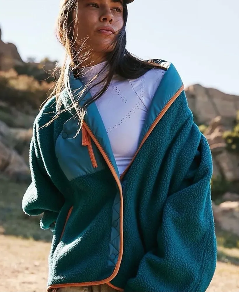 New without tags! 😊 Retail: $168 *Line through label is to prevent store returns Color: Spruced Up Combo - Blue/Green & Orange Measurements (approximate; measured while lying flat) *PTP - 34" *Length (Shoulder to Hem) - 29" A new silhouette from our Hit The Slopes Collection, this jacket features a slouchy silhouette and is super soft and warm making it the perfect layer for long days in the cold. Fit: Relaxed fit; slouchy silhouette Features: Warm fleece fabrication, slouchy silhouette, center piping detail, snap closure, nylon detailing along opening and collar, zippered side pockets, snap chest pocket Why We It: So soft and cozy for adventures and relaxing alike 100% Polyester #gorpcore #freepeople #outdoors #fall #outdoors