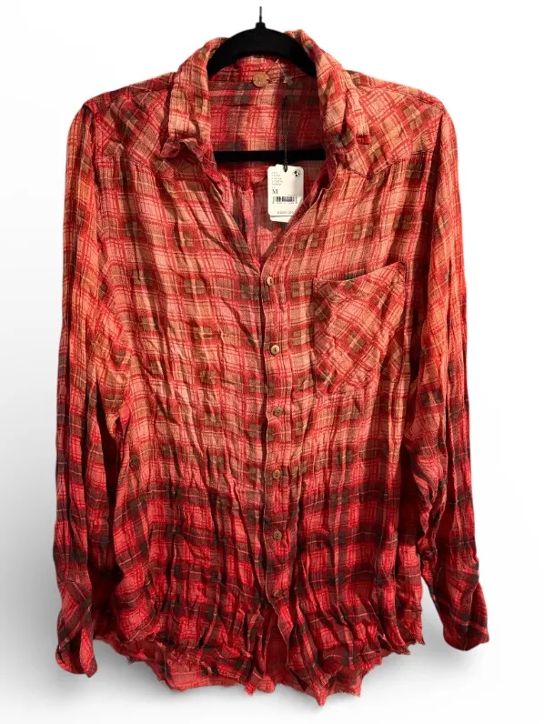 FP One Free People Red Ombré Raw Hem Plaid Long Sleeve Shirt- Size Medium - $60 New With Tags - From Tabitha