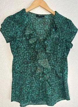 Banana Republic Forest Green top Ruffle down front and all around collar Hidden fabric buttons from... Show more