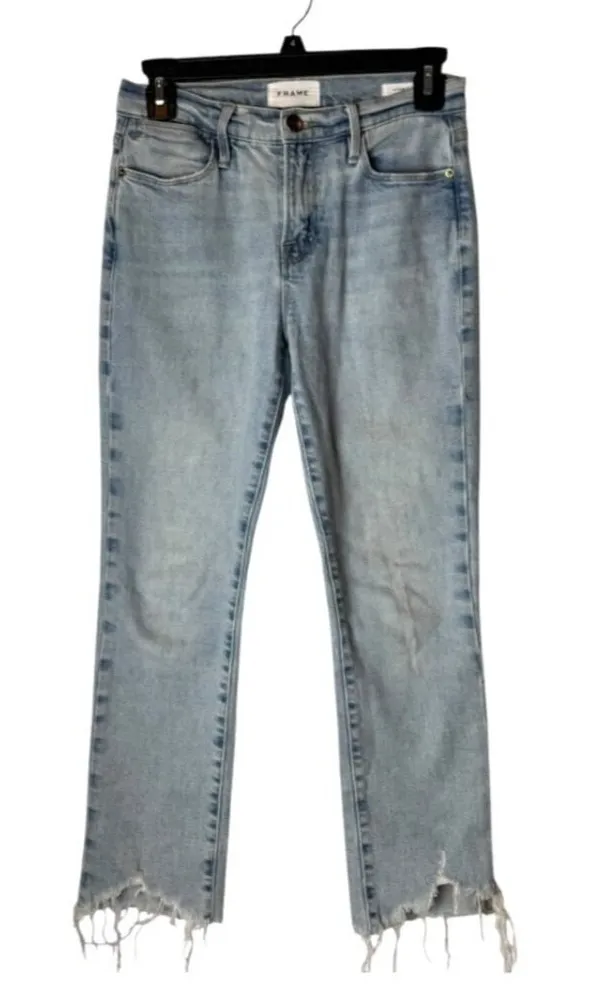 Frame Jeans Women 24 Blue Hemp Blend Bathe Chew Le High Straight Chewed Hem