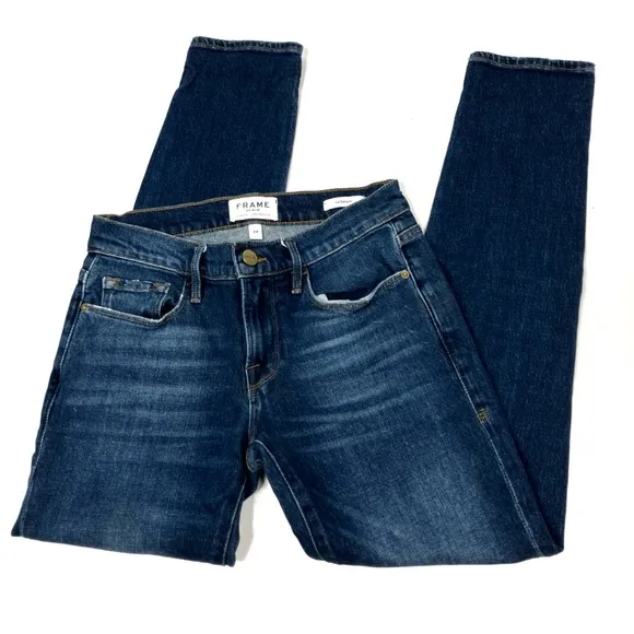 FRAME Le Garcon Watson Dark wash Skinny jeans Distressed Size 24 Cotton/Polyester/Elastane Waist:... Show more