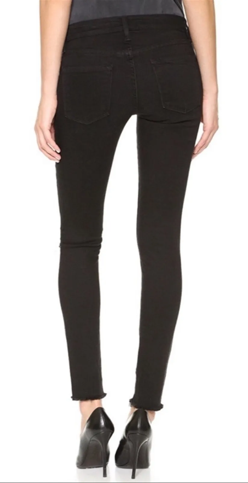 FRAME Le Skinny de Jeanne black ripped skinny jeans in Dean Rips Back Acid Stone Wash, Size 26, exce... Show more