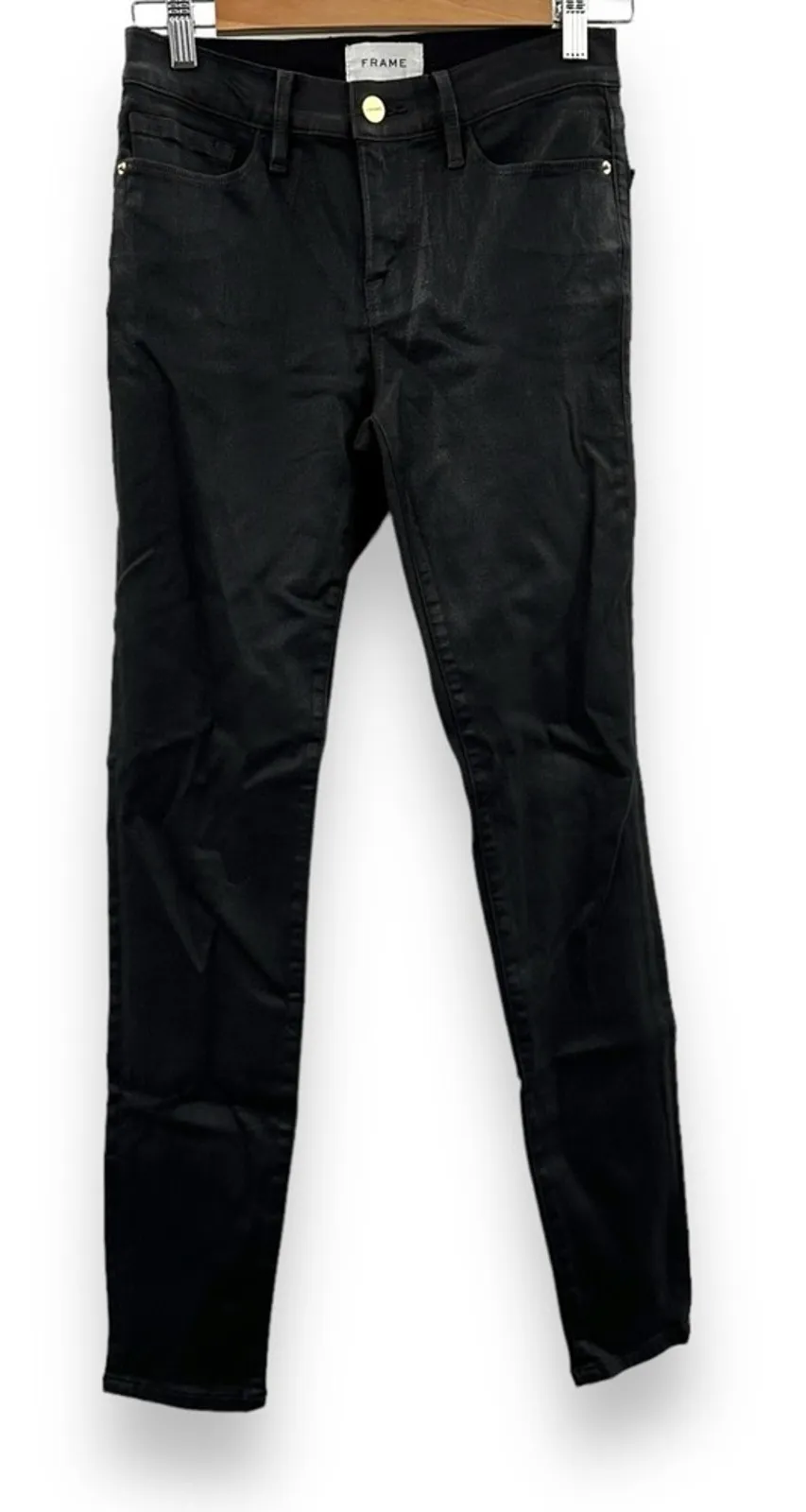 Frame Noir Coated Le Skinny de Jeanne Mid Rise Black Skinny Jeans Crafted with Frame's renowned att... Show more