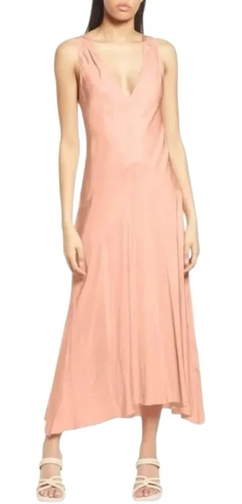 FRAME Savannah Silky Maxi Dress in Pink Clay Plunging Neckline Size Small $478 Very gently preloved... Show more