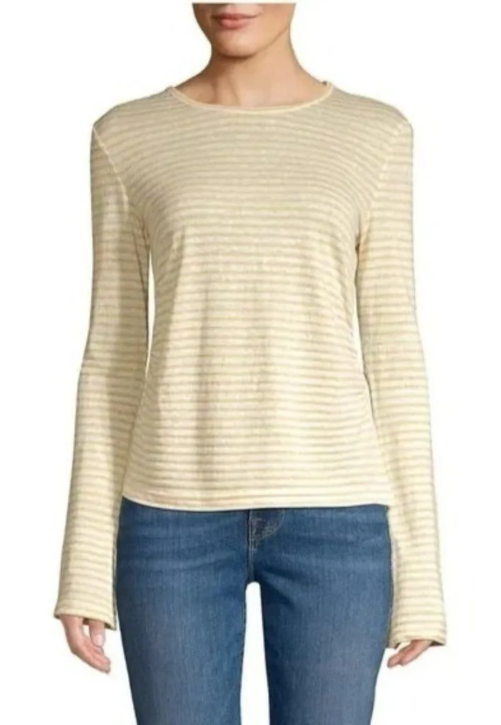 Frame Shirt Women Large Ivory Metallic Gold Striped Linen Blend Split Cuff Tee