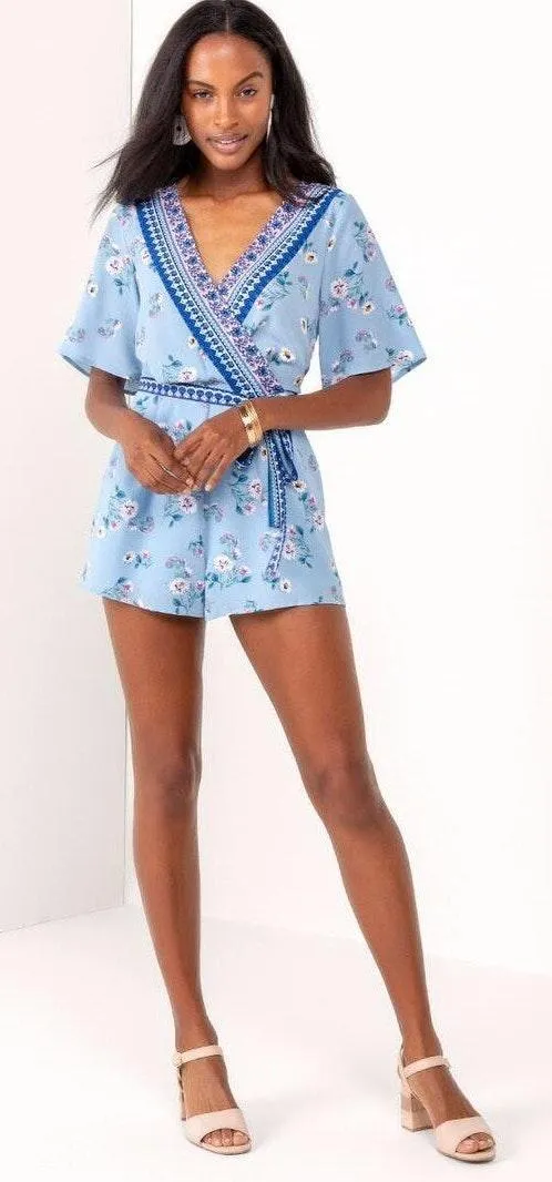 Francesca’s boutique Eileen Border pattern wrap romper! This romper is perfect for casual BBQs, brew... Show more
