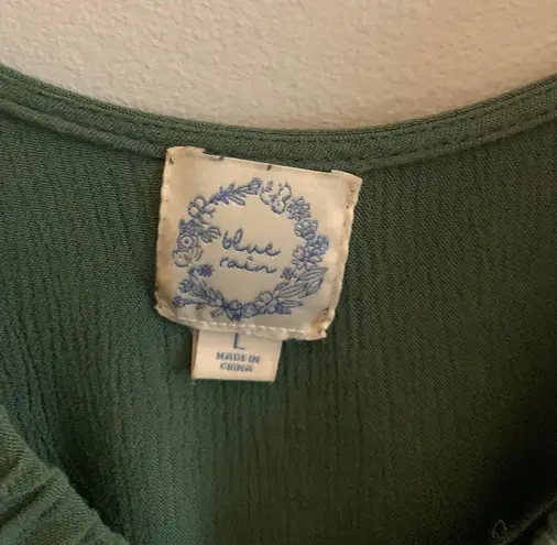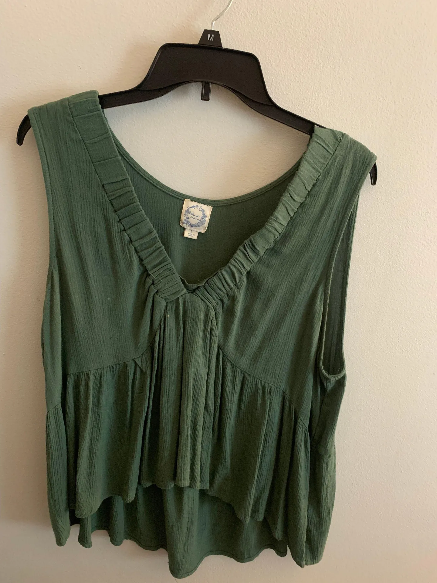 only flaw is the two small bleach stains/drops as seen in pics. Very tiny