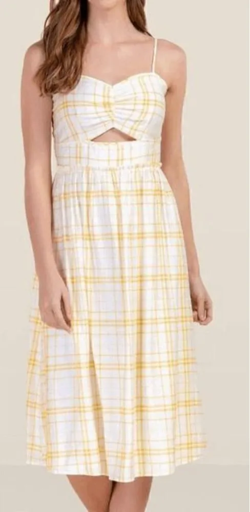 Francesca's Marla Plaid Midi Dress Excellent preowned condition Size Medium Color Yellow & white Adj... Show more