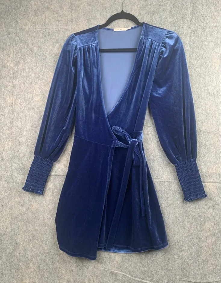Francesca's‎ Mi Ami Dress Sz S Dark Blue Velvety Mini Wrap Dress Long Sleeve - $15 - From Tita