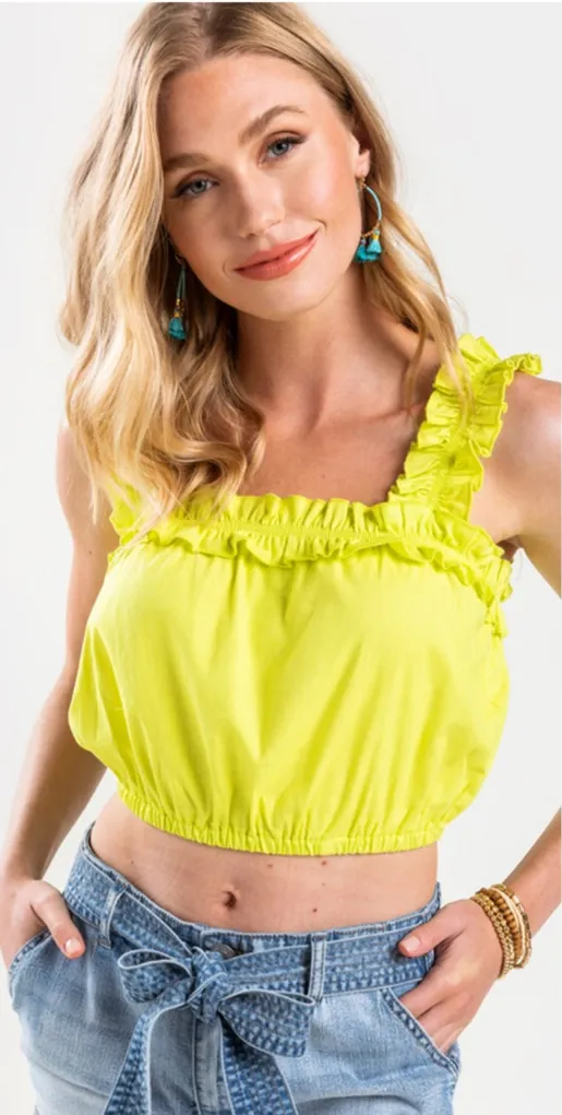 *NWOT; BRAND NEW WITHOUT TAGS!!* Women's Francesca’s Neon Ruffle Crop Top size Small NEVER WORN NO FLAWS!! PRICE IS NEGOTIABLE SEND REASONABLE OFFERS IF YOU’D LIKE! NEED THIS TO GO :)