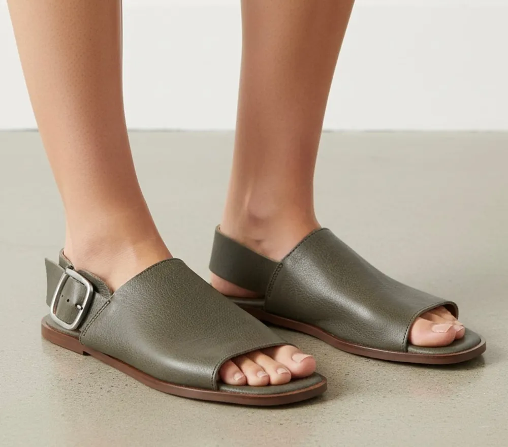 Franco Boschi Italy Leather Flat Sandals Green with Buckle Women Sz 38 - $76 New With Tags - From Fashion