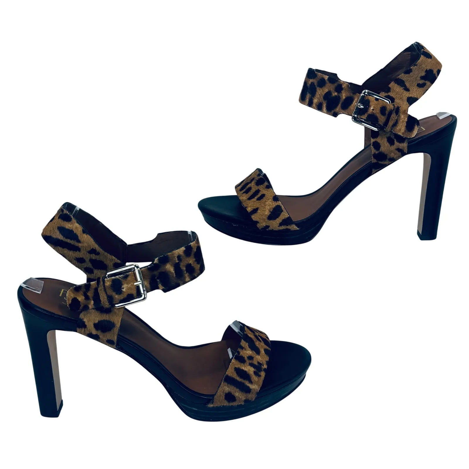 Franco Sarto "Nisha" high-heel sandals in women's size 8.5M, featuring a bold leopard calf hair uppe... Show more