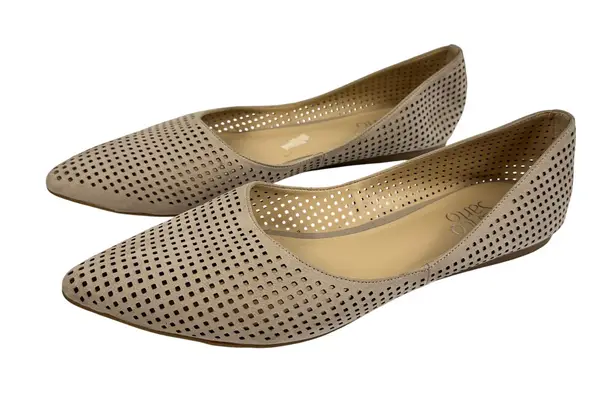 Franco Sarto Perforated Pointed Toe Flats Beige Suede Leather Women's Size 9.5 Tan - $23 - From Sheila