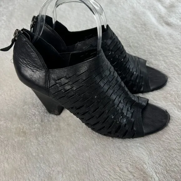 Franco Sarto Salito Bootie Womens Size 8.5M Black Leather Cutout Back Zip Open Toe No box. The shoe... Show more