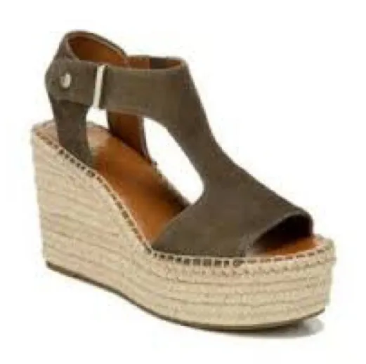 Franco Sarto treasure 2 wedge espadrilles olive green suede leather womens size 9.5 Very good pre... Show more