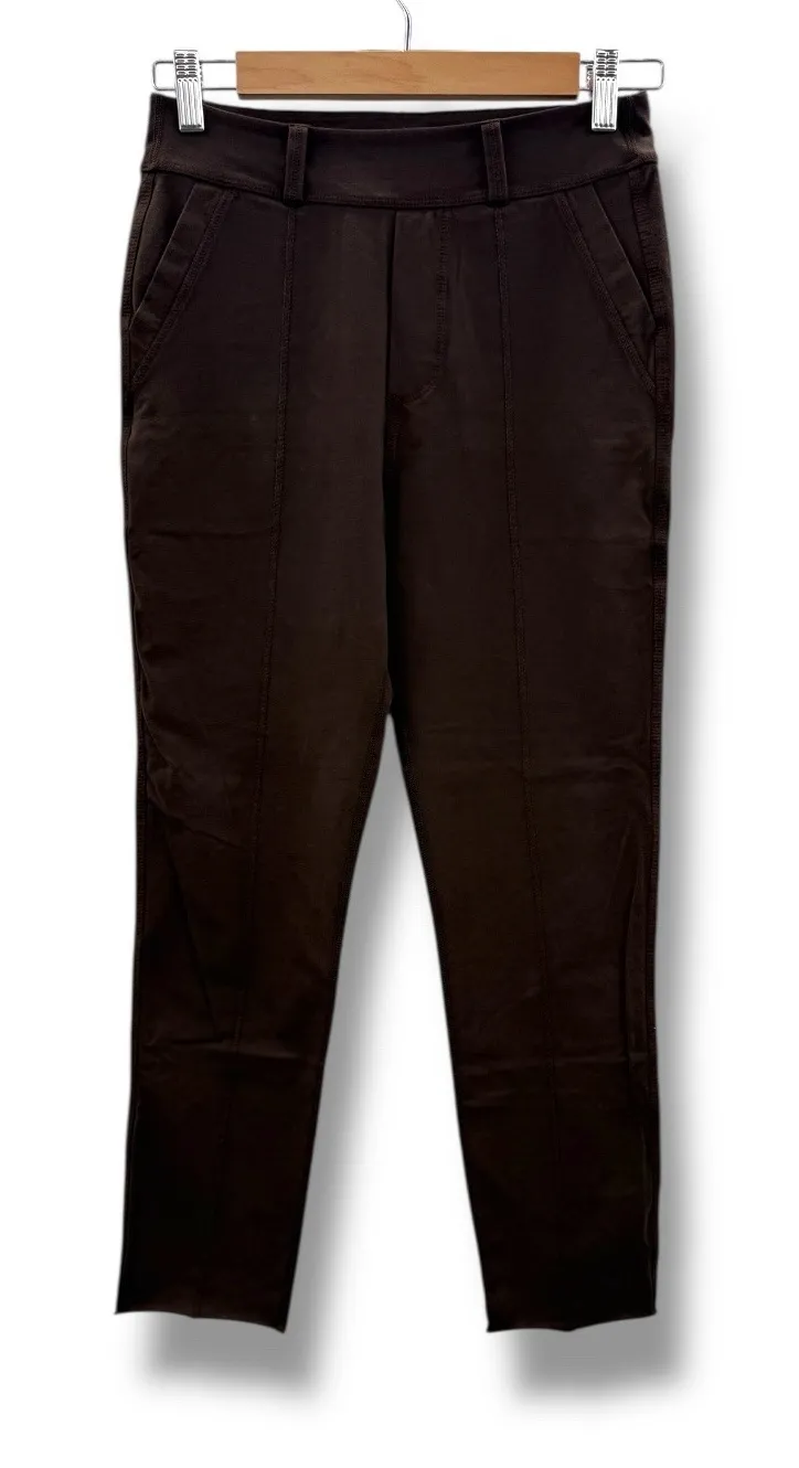 Upgrade your everyday uniform with the coveted Frank & Eileen MURPHY pants in the rare Irish Chocolate colorway. Designed with the brand's signature Super Stretch fabric, these trousers offer a tailored, polished silhouette while maintaining unmatched comfort. A best-selling style known for its smoothing fit, flattering front seam detail, and elevated casual look—perfect for work, travel, or effortless day-to-night dressing. Details: • Style: Murphy Super Stretch Trousers • Color: Irish Chocolate (dark, rich brown) • Pull-on style with clean waistband • Front seam detail for elongation • Cropped ankle-length silhouette • Amazing stretch and recovery • Soft, comfortable, elevated fabric • High-quality construction; premium feel Size: S Condition: Excellent Measurements: • Waist: 27 in (doubled flat) • Inseam: 24.5 in • Rise: 11 in Frank & Eileen pants small, Frank and Eileen trousers, women's brown stretch pants, pull-on ankle pants, office pants women, comfortable work pants, minimalist wardrobe trousers, chocolate brown pants, elevated basics, commuter pants women.