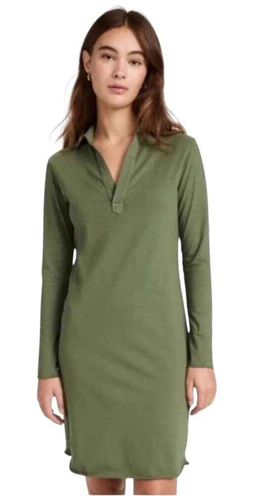 FRANK & EILEEN NEW WITHOUT TAGS SIZE: EXTRA SMALL Effortless and timeless, this Frank & Eileen Lab4211 polo collar dress is crafted from soft 100% cotton. Designed with a relaxed shift silhouette, long sleeves, and an open split neckline, it’s an easy pullover style that transitions seamlessly from casual days to travel, brunch, or laid-back evenings. Made in sunny California, this high-quality dress reflects Frank & Eileen’s commitment to everyday luxury. Style Notes • Style: Lab4211 Polo Collar Dress • Color: Army Green / Olive • Material: 100% Cotton • Long sleeves • Split V-neck polo collar • Pullover shift silhouette • Machine washable • Made in USA MEASUREMENTS: Bust: 18” Length: 36” ***all measurements are approximate casual cotton dress, lounge dress, olive green dress, made in USA clothing, Frank & Eileen Lab4211, polo shirt dress, long sleeve shift dress, sustainable fashion, travel dress, weekend dress
