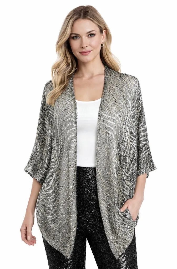 Frank Lyman Cover Up Jacket Cardigan US 10 Gold Black Sheer Cocoon Disco Retro This elegant silver... Show more