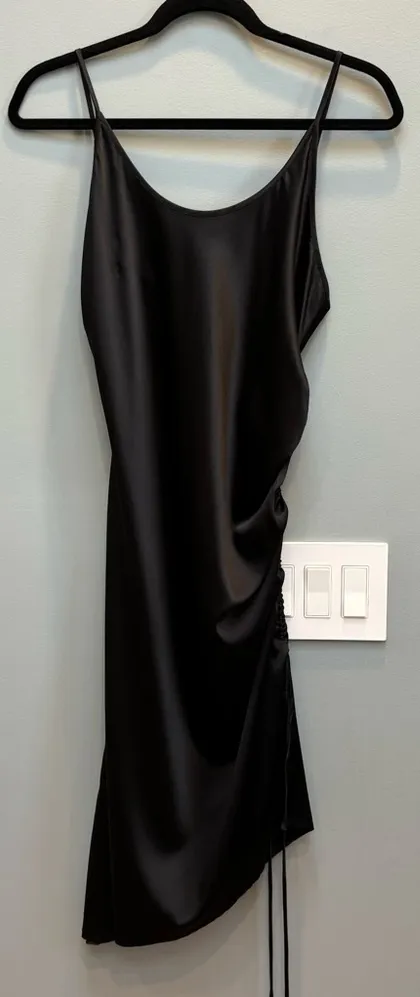 Sexy and sleek silk blend slip dress Adjustable spaghetti straps Adjustable ruching at the side Dre... Show more