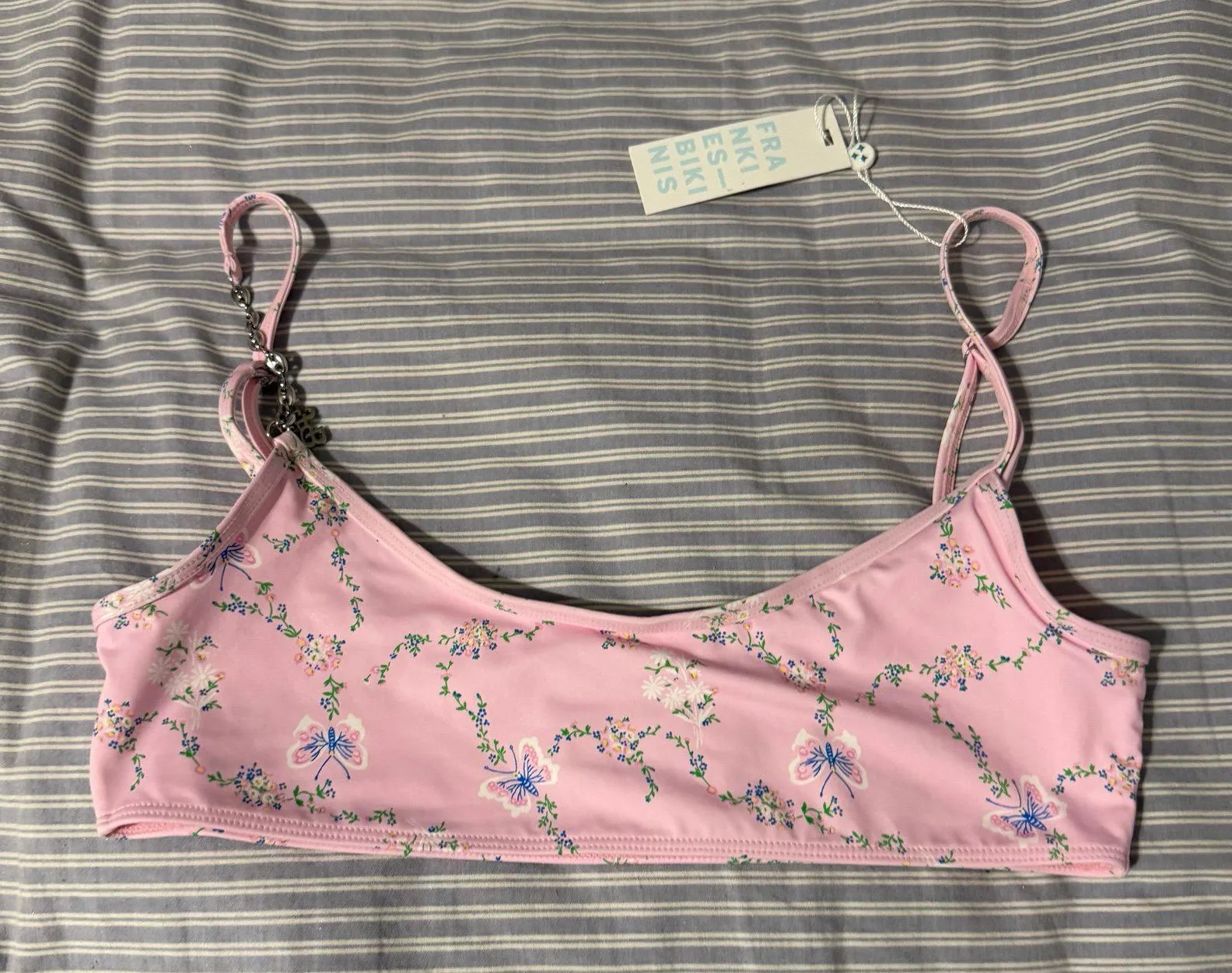 Brand new Size large Frankie’s Bikinis “Dallas” Floral Chain Bikini Top - fairy tale