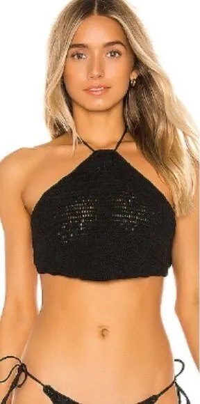 New! Frankies bikini black crochet halter bikini top 100% cotton, size S New without tags. Frankies... Show more