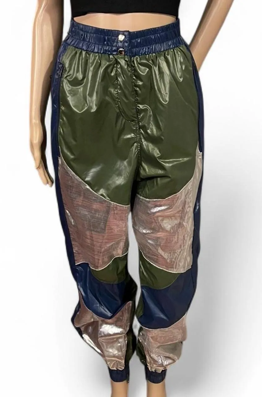 NWOT! AIELLO by Frankies Bikinis Unique Y2K Color Block Nylon Joggers Size Large Parachute Pants N... Show more