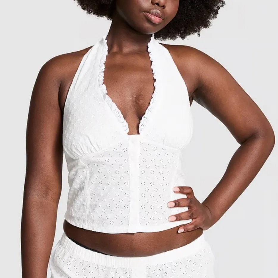 New with tags! No flaws/wear This PINK by frankies bikinis halter top is crafted in eyelet fabric w... Show more