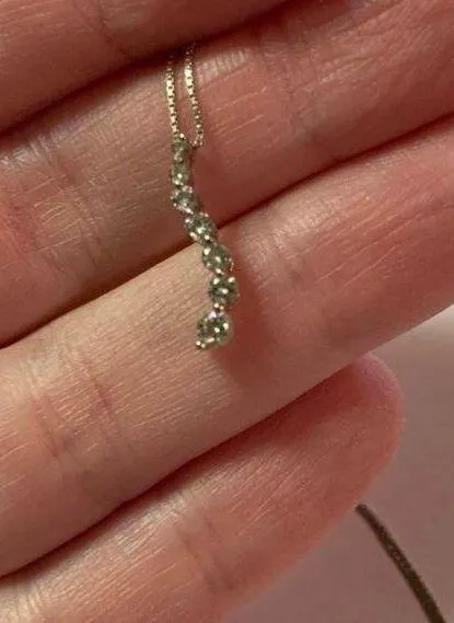(657) Gorgeous journey diamond necklace. Six diamonds different sizes in a (I think silver?) setting... Show more
