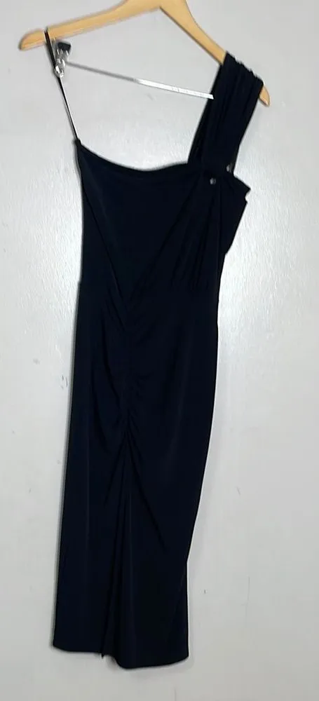 Elevate your evening attire with this stunning black sheath dress from Frederick's of Hollywood. Designed with a chic one-shoulder neckline and a sleek sleeveless silhouette, this dress is perfect for cocktail events. The form-fitting style accentuates your figure, while the solid black color adds a touch of timeless elegance. Ideal for a night out, this dress is a must-have addition to your wardrobe.