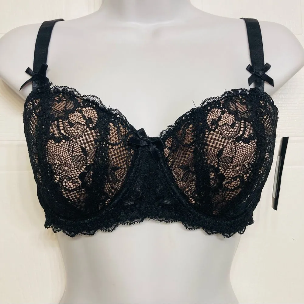 Frederick's Of Hollywood Cynthia Lined Black Lace Balconette Bra Size 34DD NEW Women’s size 34 DD... Show more