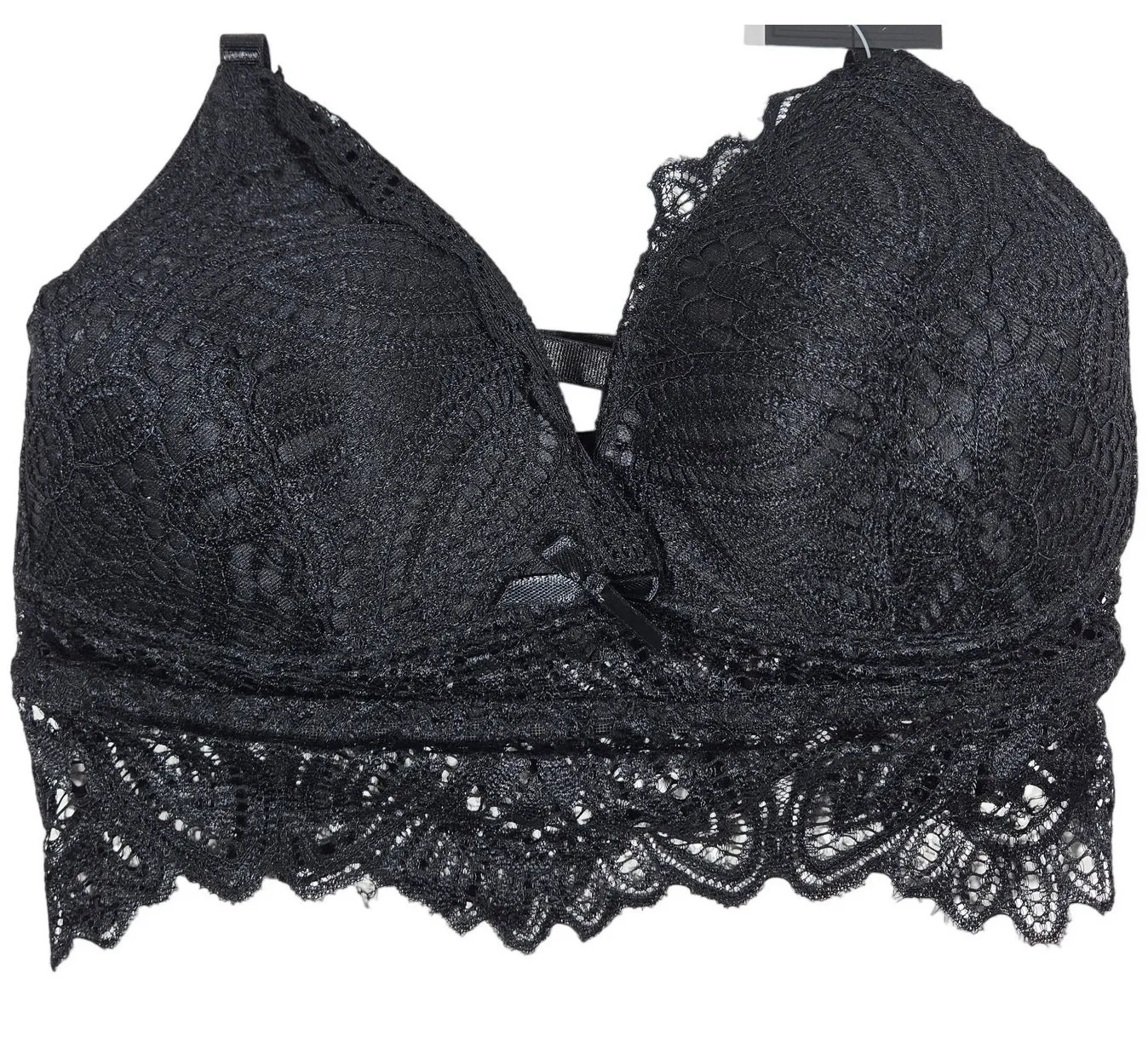 Frederick's of Hollywood Finley Lace Bralette Black S NWT New with tags. Tagged info: Size: S Style #: X253-3335 Style Name: Finley Lace Bralette Retail: $29.50 Pull over bralette Lace band Adjustable Strap Padded cup Boho Sexy Festival Bedroom Boardroom Feminine Romantic Adjustable straps, lace trim with floral design.