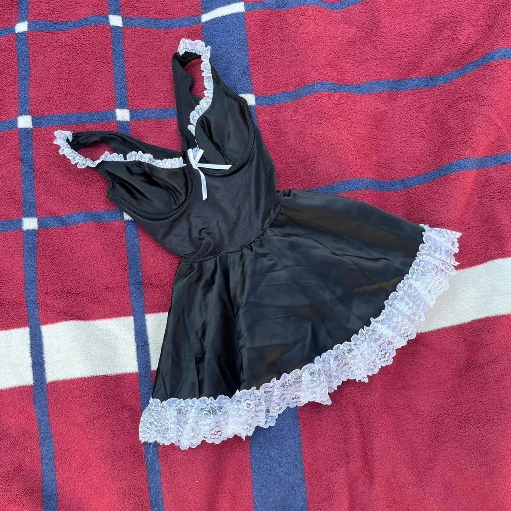 Frederick’s of Hollywood mini black dress w/ lace detailing cute Halloween maid Size XS - $95 - From Kristal