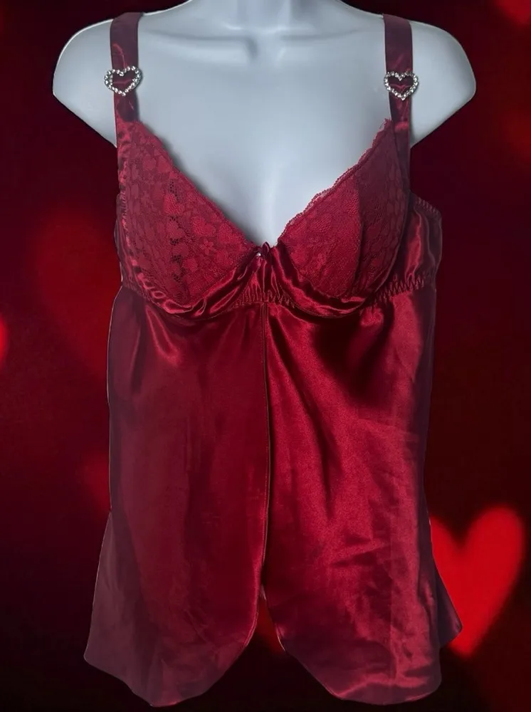 Frederick’s of Hollywood‎ Wine Red Heart Jeweled Embroidered Teddy Top XL - $28 - From Casey