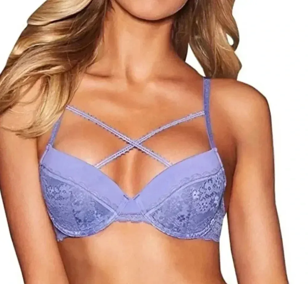 Fredricks Of Hollywood Padded Lace Bra 32C NWT Lydia Strappy Detail Purple Size undefined - $20 New With Tags - From Sara