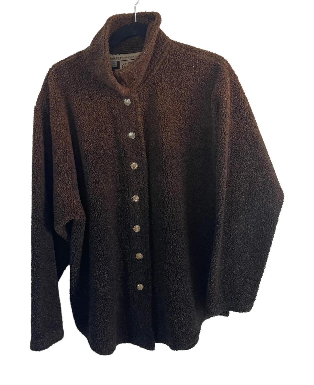Country Clothing Vintage 90s Large Brown Sherpa Button Up Outdoor Jacket Size Large Pit To Pit 24" Length 27" Item is in very good preloved condition! All Measurements, and material content tags are in the photos. Thank you for your interest in an item from my shop! We ship every 1-2 business days. Thank you! Appreciate you supporting our business.