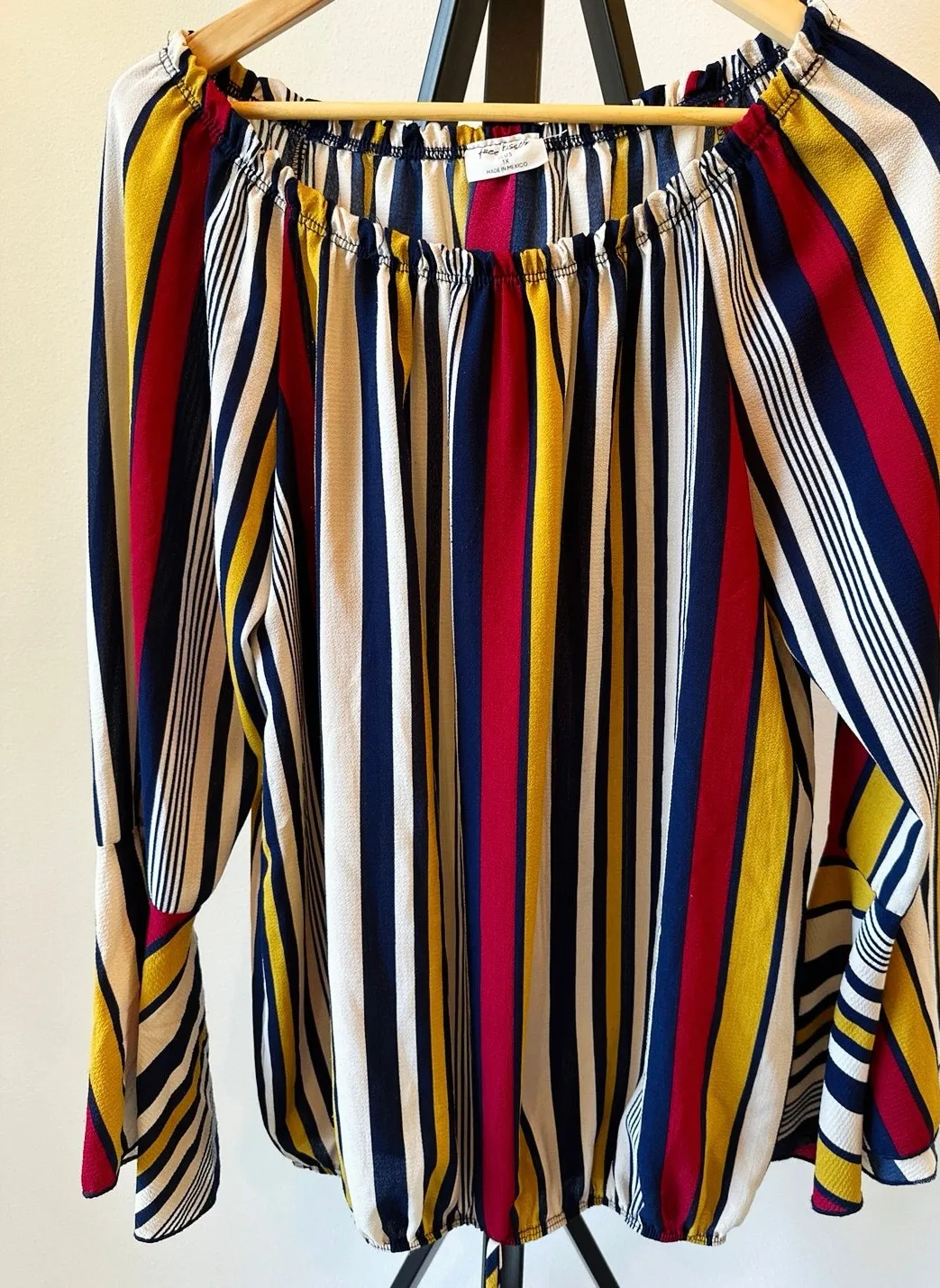 Free Kisses Plus Size Womens Long Bell Sleeve Shirt Size 1X Red Yellow Navy - $16 - From Gen