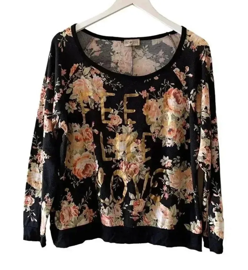 Free Kisses ¾ Sleeves Womens Floral Crewneck “Feels Like Love” Print SZ 2X Excellent pre-owned condi... Show more