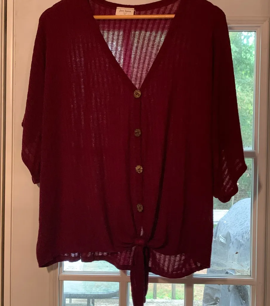 Free Kisses- Womens 2X, burgundy, slouchy top. Short sleeves. Worn once. - $7 - From Becky