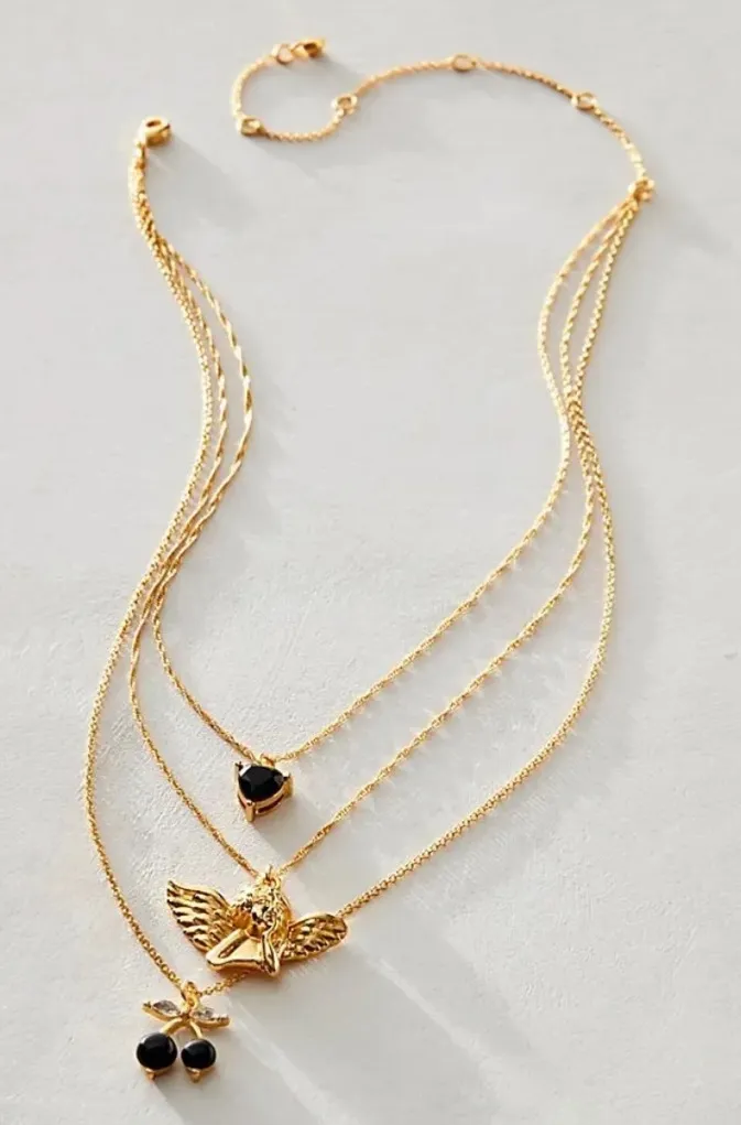 Free People Angels Only 14k Gold Plated Layered Necklace In Black NWOT New Without Tags Details... Show more