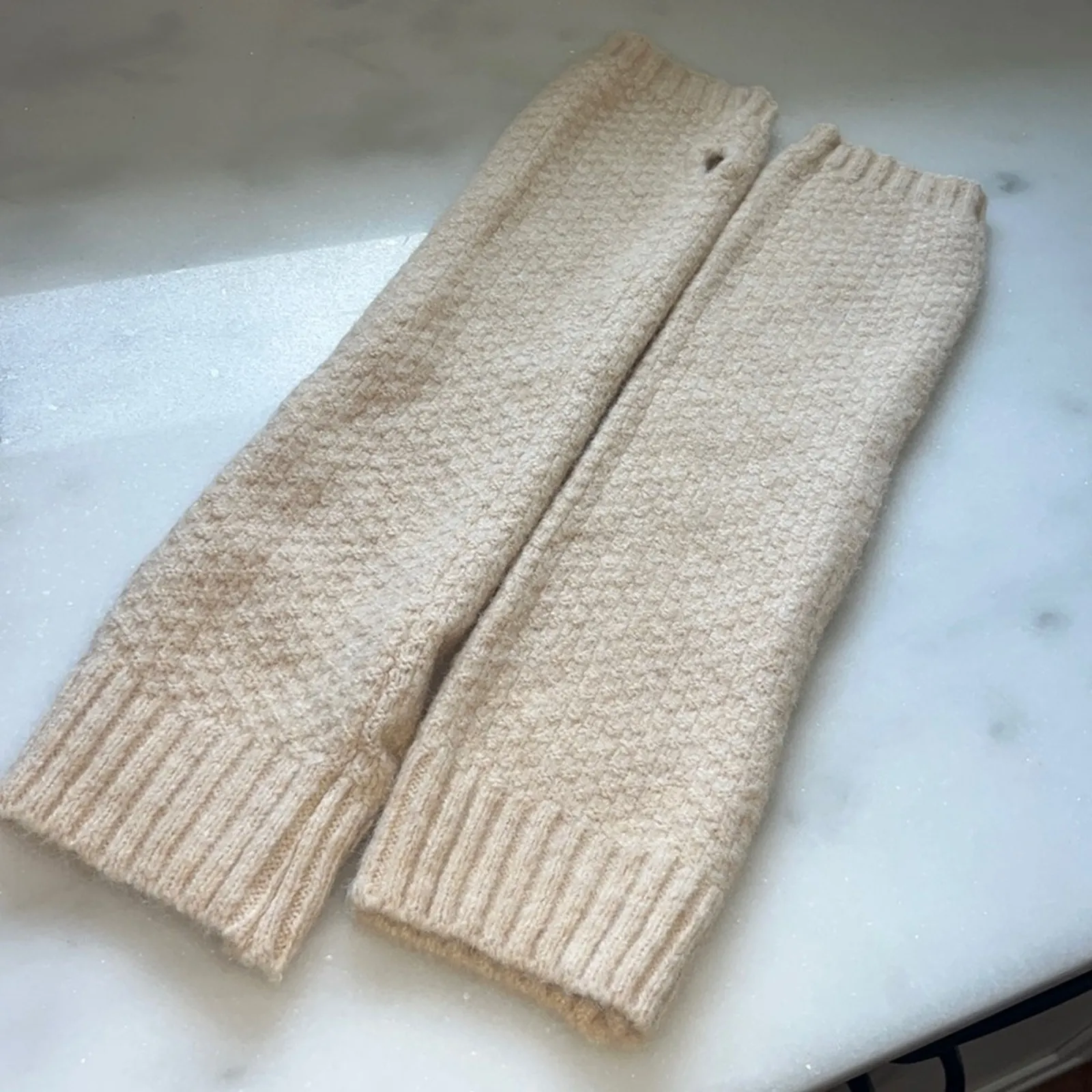 Free People Armour Knit Arm Hand Warmer Fingerless Women's One Size Cream Ribbed Gorpe Stretch Sty... Show more