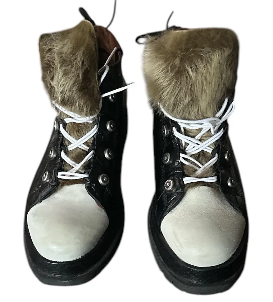 FREE PEOPLE A.S.98 Black White faux fur tongue lug suede leather Women's Shoes Like new condition.... Show more