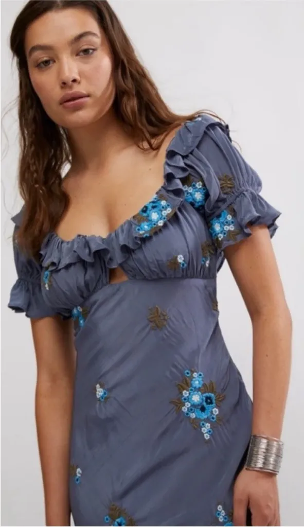 This sweet maxi dress from Free People offers embroidered florals on a vintage silhouette that's sur... Show more