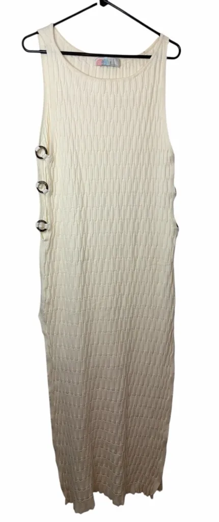 . Size XL Knit fabrication, boat neckline, open sides with O-ring details, two side slits