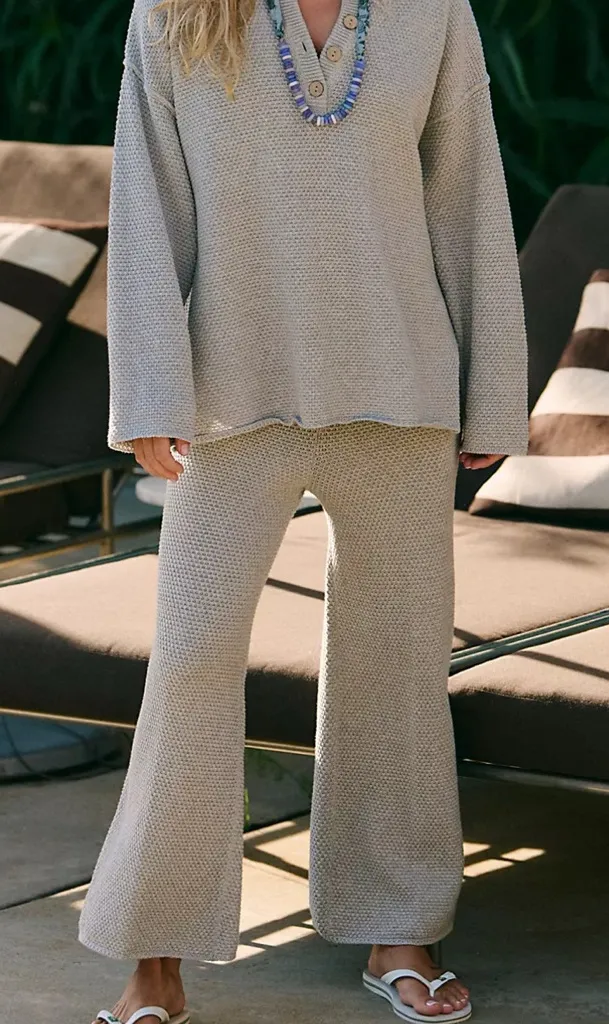 Free People Beach NWT Hailee Sweater Knit Wide Leg Pants Women’s Size XL Ivory Heather New with Tag... Show more