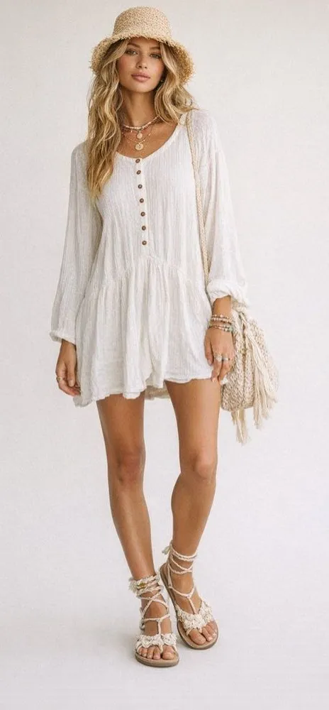 Free People Beach ribbed coverup mini dress. Button front, mini length. Semi sheer