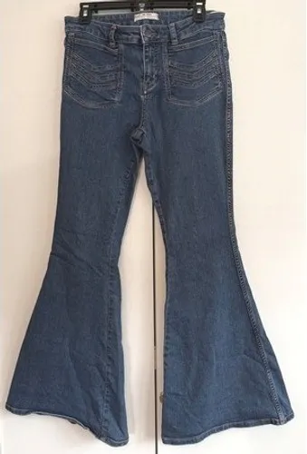 Keywords: Free People jeans, women's flare jeans, high rise denim, button fly jeans, bell bottom jeans, retro jeans, boho jeans, designer denim, fashion jeans, denim pants, vintage style, size W 30, blue jeans, stretch denim, casual wear, 70s Retro, Boho/Hippie, Festival, Y2K Revival, Hippie, Costal Cowgirl, Retro Denim