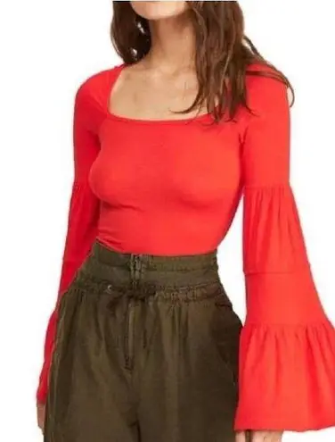 Babetown Bell Sleeve Top in a gorgeous orange color. Features dramatic bell sleeves which add vintag... Show more